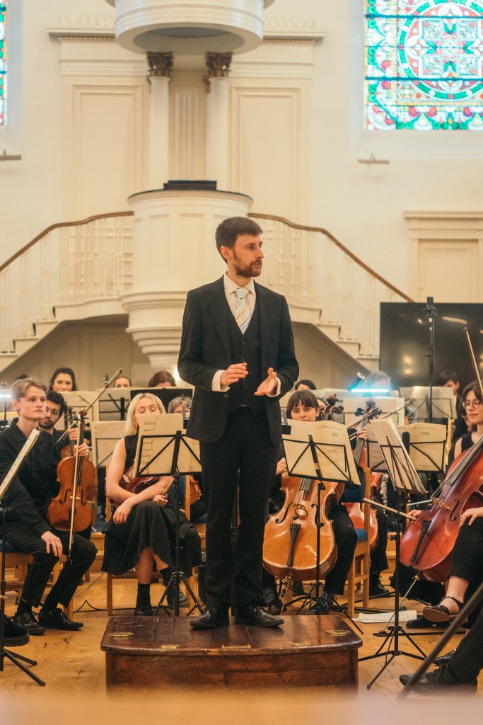 In October 2023, Tim founded the amateur orchestra Aurora Ensemble, based in Edinburgh, with the aim of promoting classical music by composers who are rarely played by amateur orchestras, especially women. Giving the spotlight to under-represented groups and instruments is a strong part of Tim’s ethos as a conductor: integrating such works alongside established favourites is one way of enthusing players and audiences alike, providing opportunities to play or hear works which might otherwise be left undiscovered. He also has a particular interest in Nordic composers. Recent concerts have featured works by Munktell, Coleridge-Taylor and Llyn-Owen, alongside Elgar, Sibelius and Tchaikovsky. Further, Tim has a strong interest in musical outreach, sparked by work in primary schools and care homes whilst a student. He ran for several years the successful Edinburgh University Music Society Education Project, which culminated in delivering a series of workshops of his own devising to over 200 children in primary schools across Edinburgh.